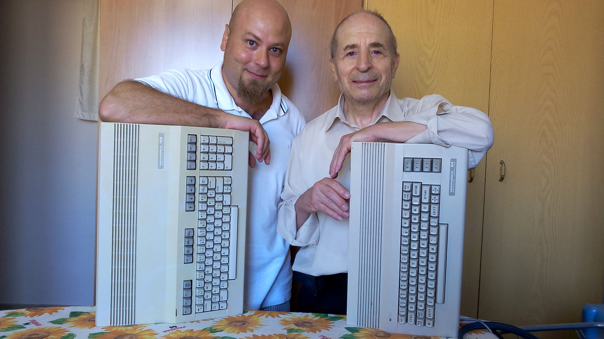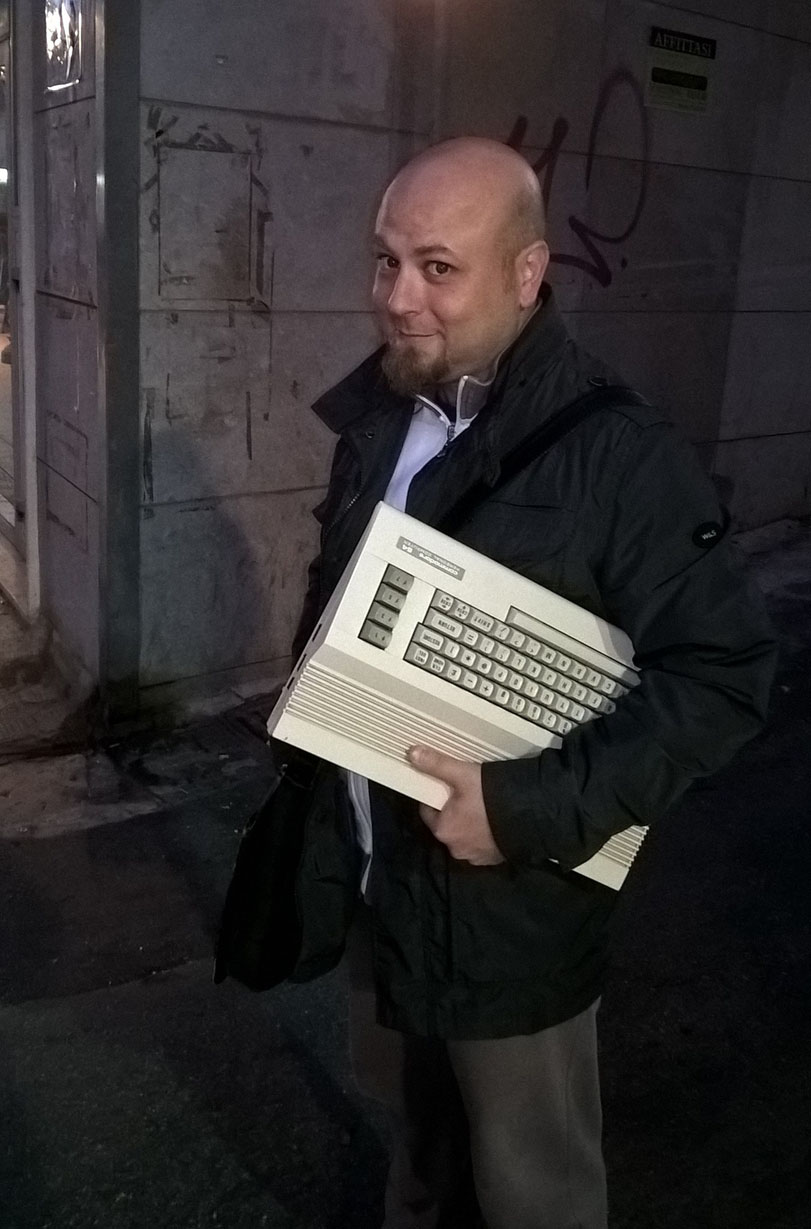 RGP: Personalmente credo che, questa tua passione sia stata in parte ereditata da familiari…Tempo fa, infatti, su Facebook hai pubblicato un post ed una foto di te e tuo padre con in mano, rispettivamente, un Commodore 128 ed un Commodore 64C. Anche tuo padre, ai tempi, si dilettava con il gioiellino Commodore?