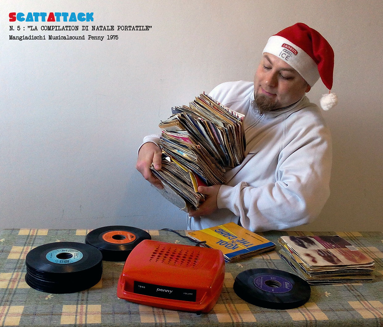 Fotografare ad esempio un televisore Autovox Linea 1 e aggiungere un titolo e alcune informazioni come ad esempio chi lo ha disegnato, in questo caso Rodolfo Bonetto, e l’anno di produzione credo che sia un ottimo modo per condividere la mia passione e nello stesso tempo dare qualche informazione. E così anche il cinevisore Mupi, il TRICKY TRAPS, il floppy da 8 pollici, la Renault 4, continuano ad essere ricordati e magari a destare ancora l’interesse di qualcuno. Per quanto riguarda il nome che ho dato alla serie…beh io sono un fan di Muciaccia e tutte le domeniche fino a poco tempo fa vedevo Art Attack, un programma bellissimo che ti fa venire voglia di andare a comprare pennarelli, matite, colori, gessetti… eeehhmmm non me lo chiedere ti rispondo subito, li ho già comprati! Un giorno, quando all’improvviso mi è venuta l’idea di fotografare il 45 giri della serie TV Mork & Mindy, con me a testa in giù, avevo in mente Art Attack e da lì ho pensato alla parola ScattAttack…